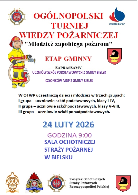 Zapraszamy serdecznie do udziału w Ogólnopolskim Turnieju Wiedzy Pożarniczej „Młodzież Zapobiega Pożarom”.
