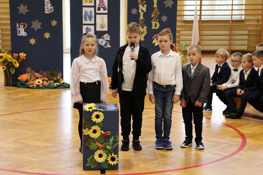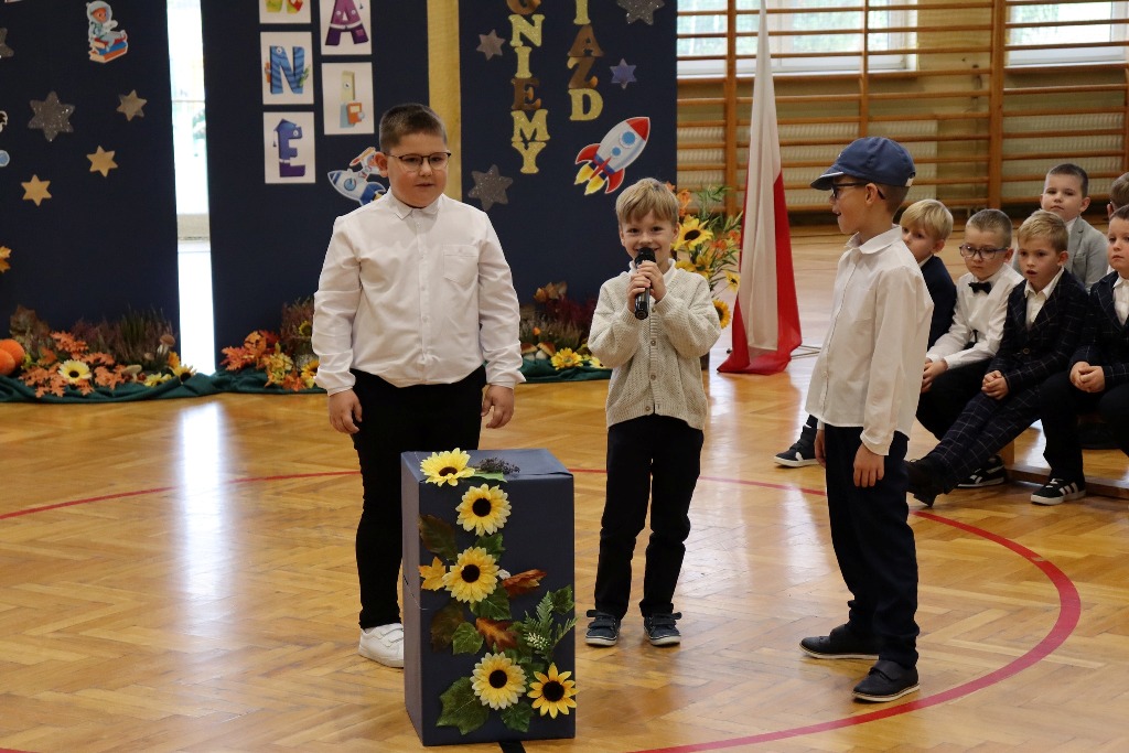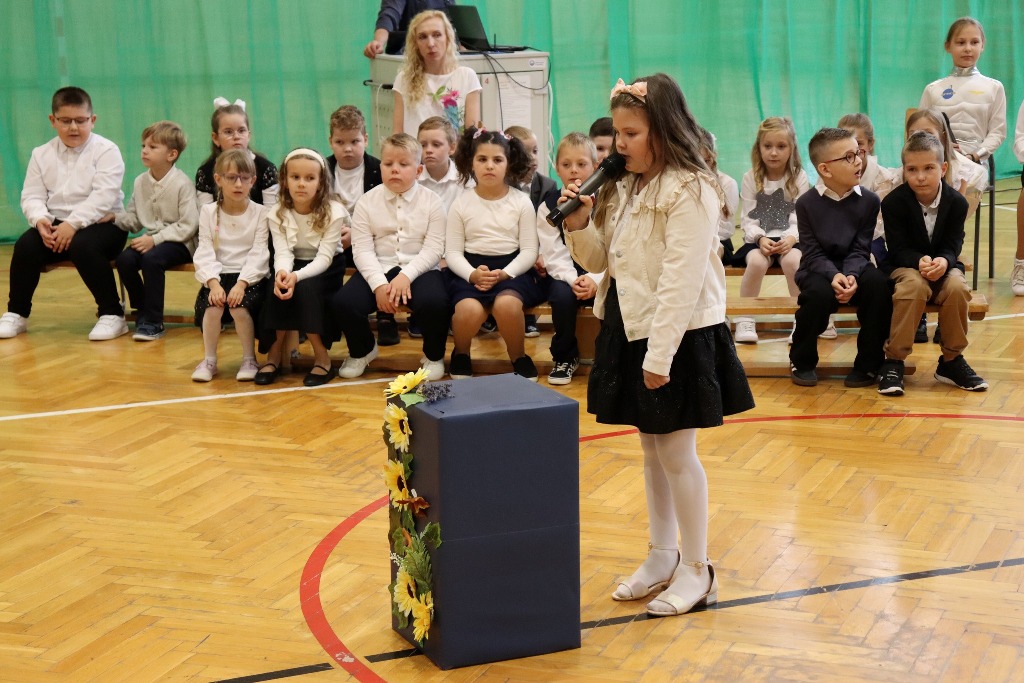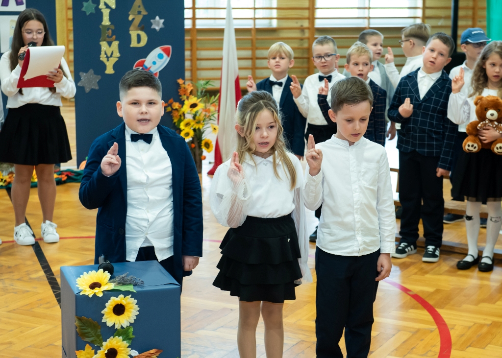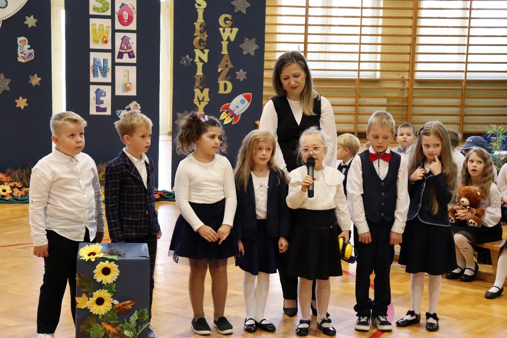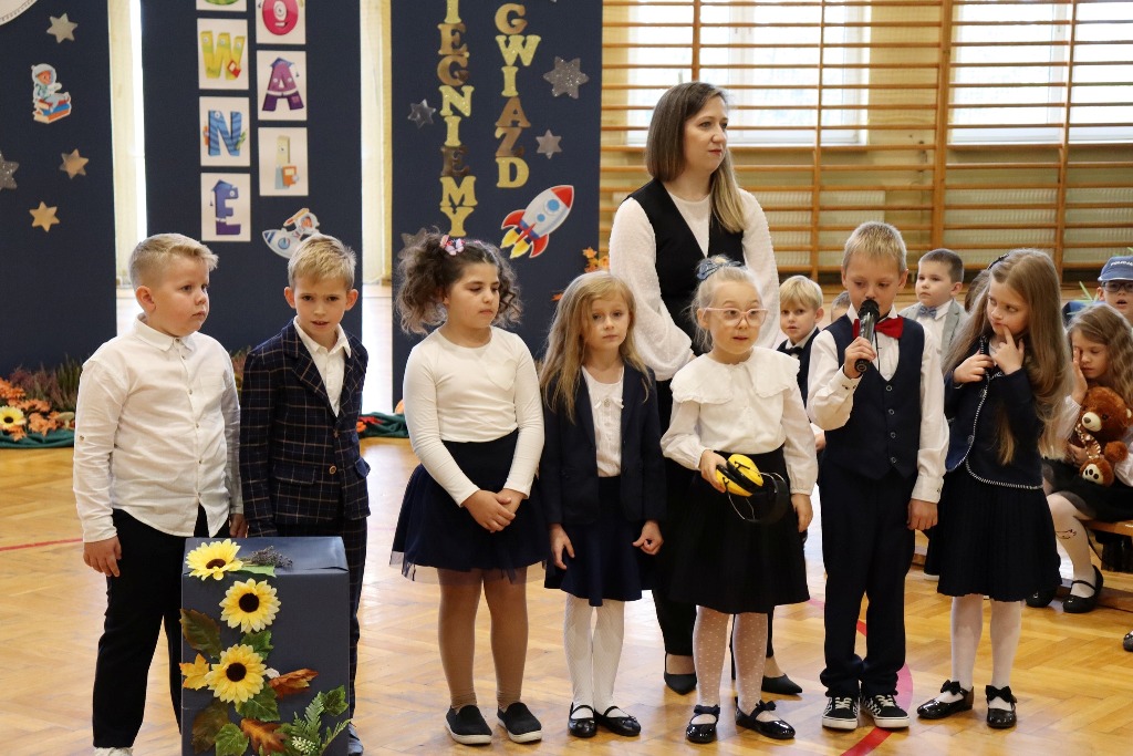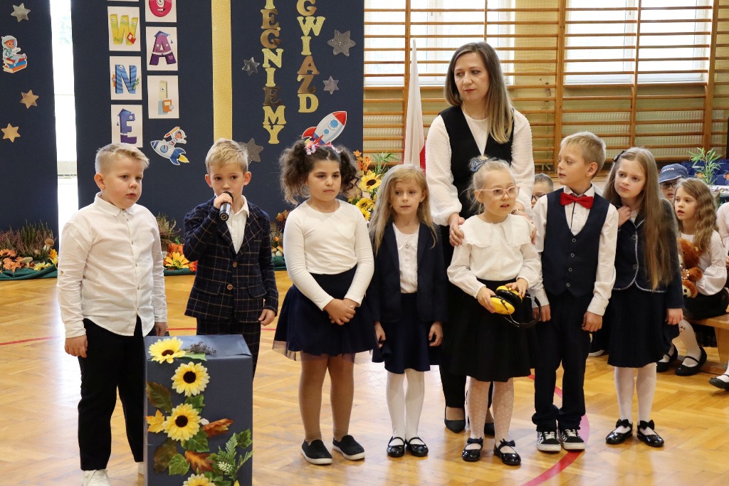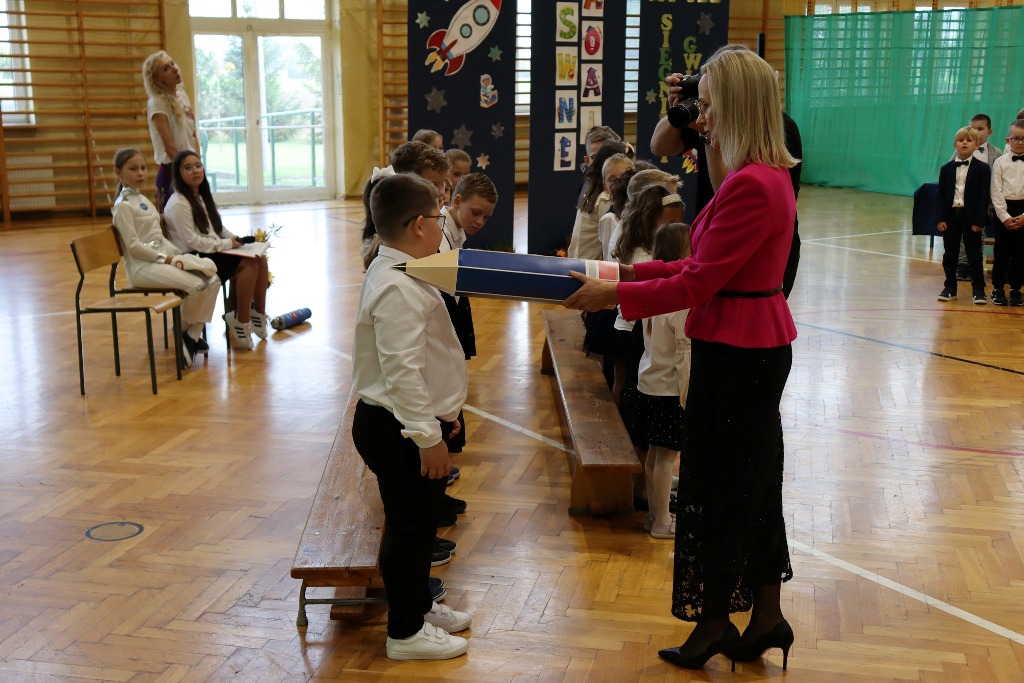 Mamy kolejnych pełnoprawnych uczniów naszej szkoły! Pierwszoklasiści w miniony czwartek zaprezentowali program artystyczny podczas uroczystości Pasowania na ucznia. Był kosmonauta, start rakiety i list od dzieci wysłany w kosmos. Kulminacyjnym momentem ślubowania pierwszaków było dotknięcie ramienia każdego z nich przez p. Dyrektor zaczarowanym ołówkiem. Symboliczny gest wykonany ołówkiem sprawił, że stali się prawdziwymi uczniami. Wszystkim pierwszoklasistom gratulujemy wejścia w nowy, wspaniały etap szkolny.
