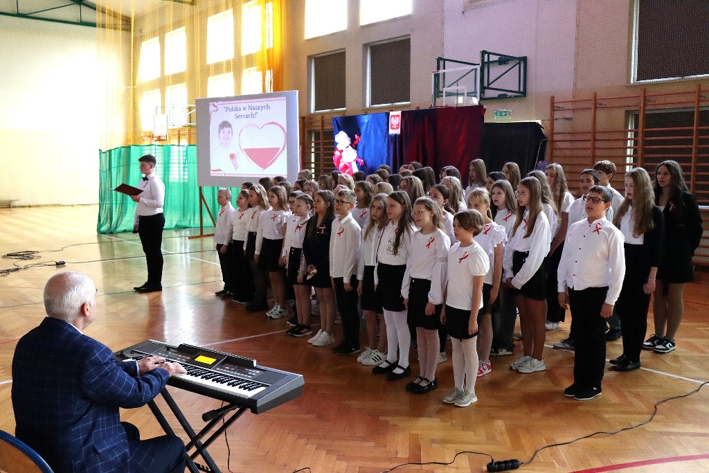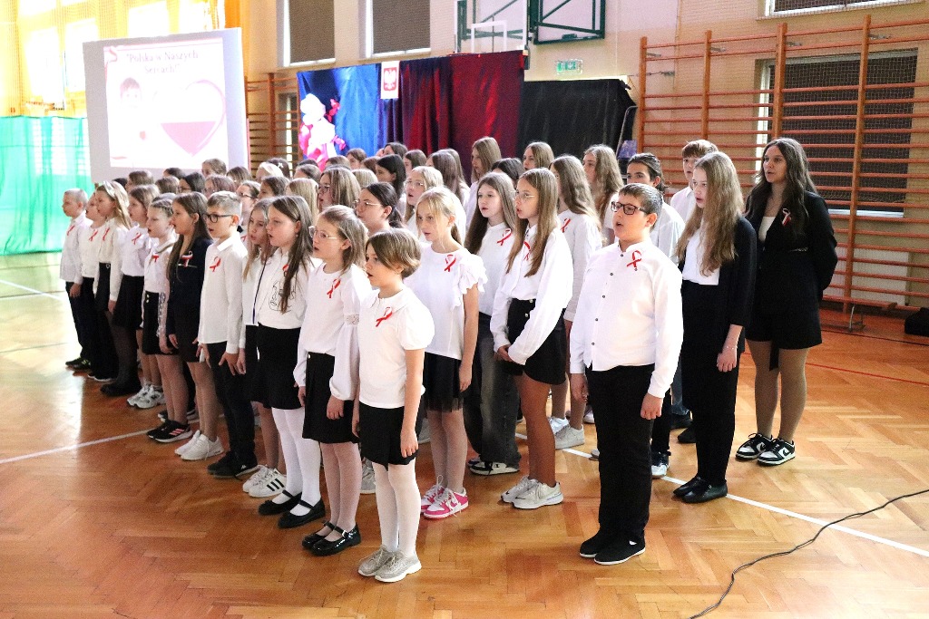 Cała społeczność szkolna odśpiewała ,,Mazurka Dąbrowskiego” oraz ,,Rotę”. Uczniowie mieli ponadto okazję poznać najważniejsze fakty z historii Polski i dowiedzieć się, jak można być patriotą w XXI wieku.
