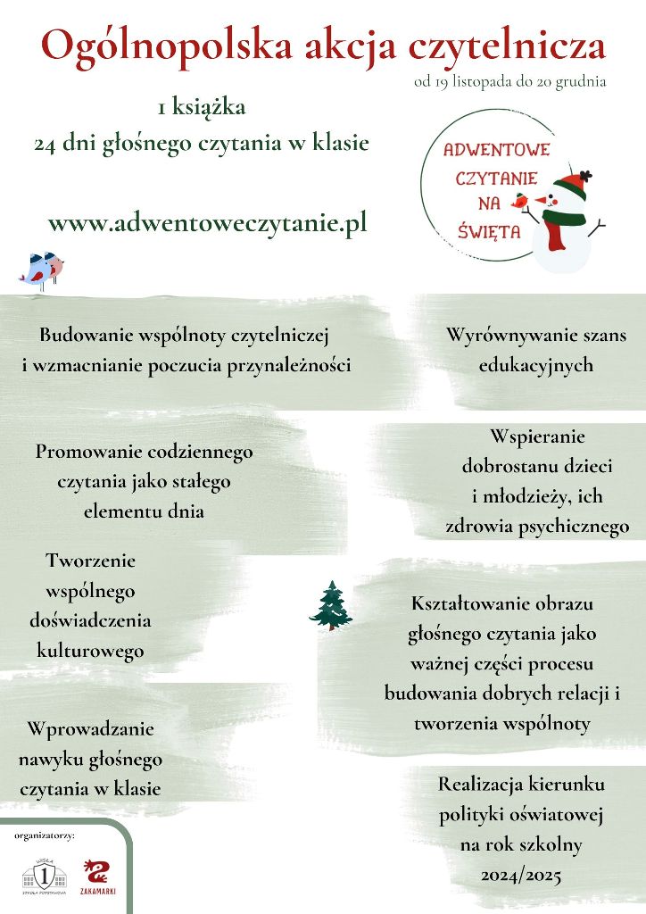 Nasza szkoła bierze udział w Ogólnopolskiej akcji czytelniczej „Adwentowe czytanie na Święta”.