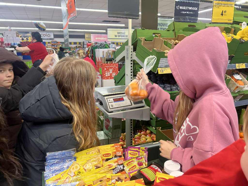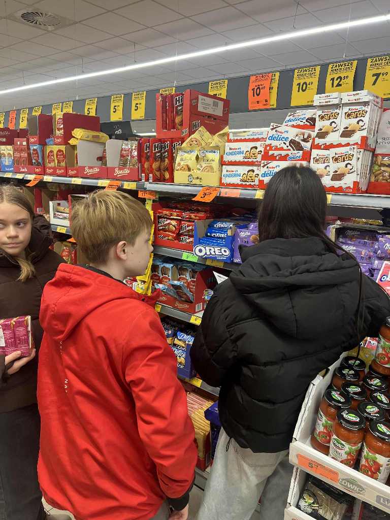 Uczniowie klas 6a i 6b wzięli dziś udział w wyjątkowej lekcji matematyki w terenie – „Misja Biedronka: Matematyczne wyzwanie zakupowe”. Zadaniem zespołów było rozwiązywanie praktycznych zadań rachunkowych podczas zakupów, analizowanie cen, porównywanie ofert i planowanie budżetu.