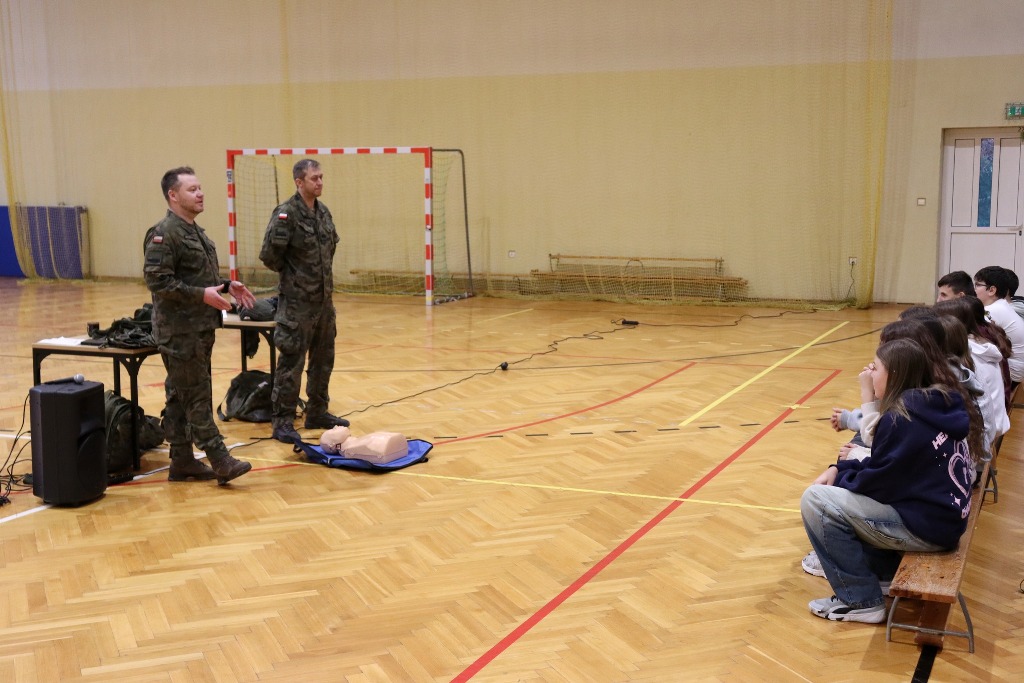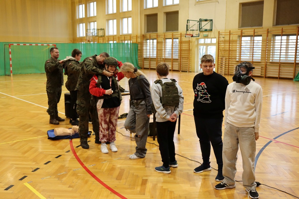 W trakcie 3-lekcyjnego spotkania łączącego teorię z praktyką, uczniowie zapoznani zostali przez żołnierzy 6 Mazowieckiej Brygady Obrony Terytorialnej z treściami z pogranicza wojskowości, obronności, bezpieczeństwa, pomocy medycznej oraz obrony cywilnej.