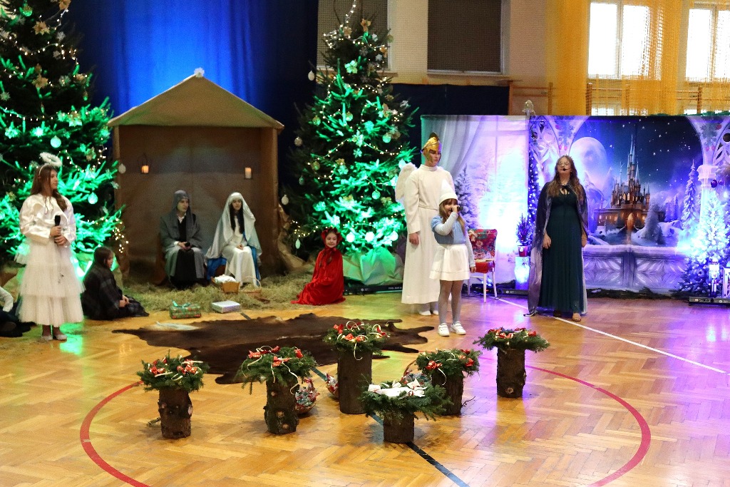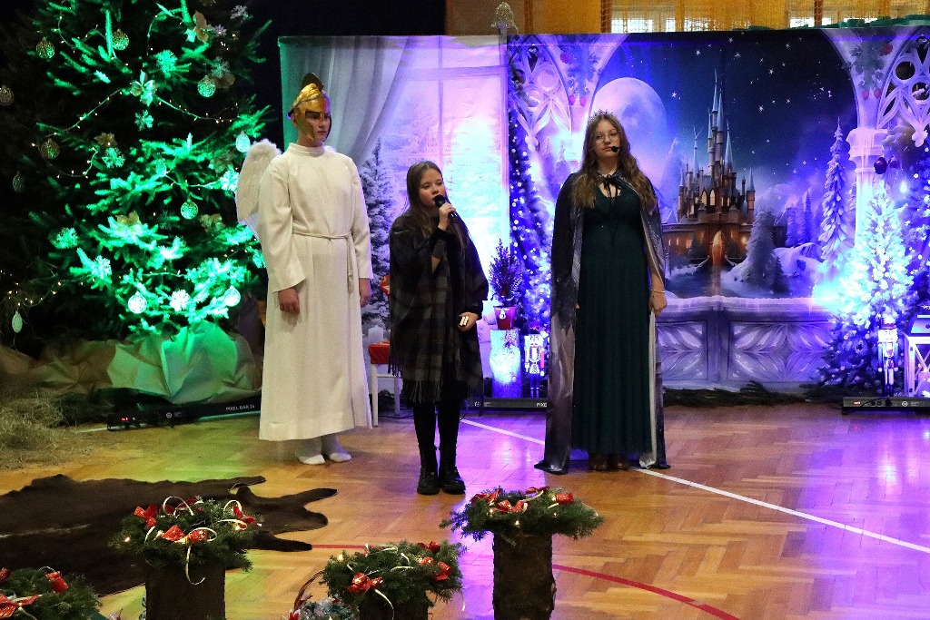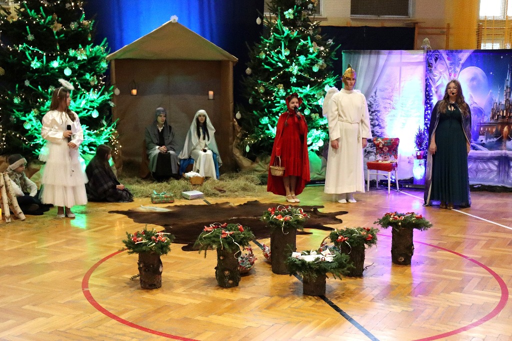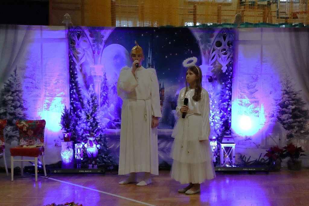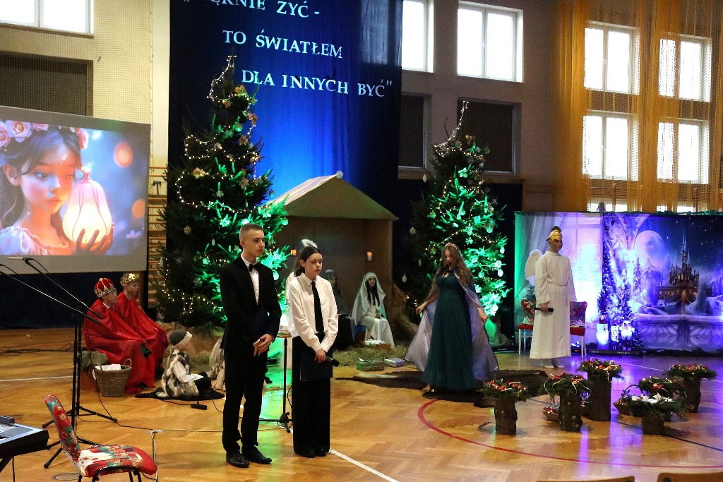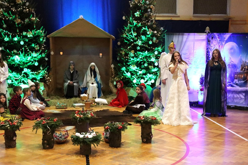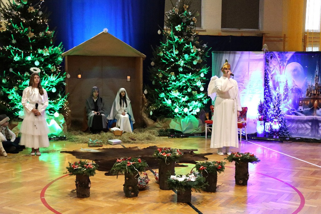 Wydarzenie rozpoczęło się od uroczystego powitania gości przez panią dyrektor Marię Kluge. Scenariusz tegorocznych jasełek, można powiedzieć, był trójwymiarowy, opierał się na tradycyjnych motywach biblijnych, historycznym przyjściu Jezusa w Betlejem.