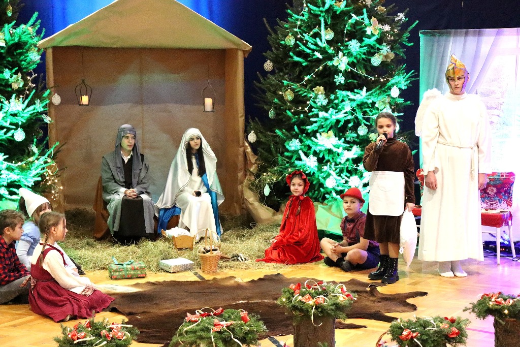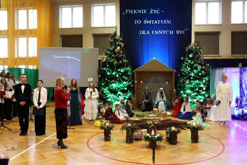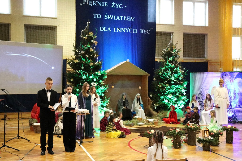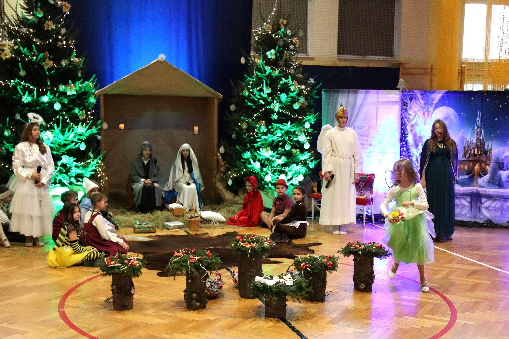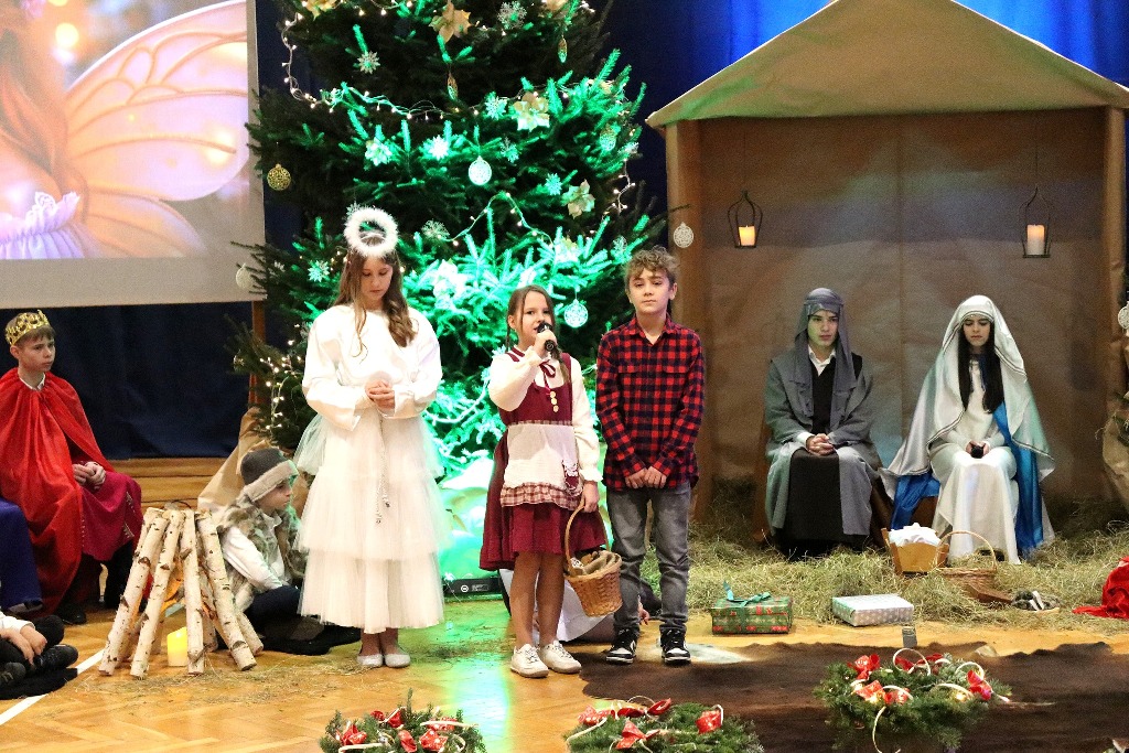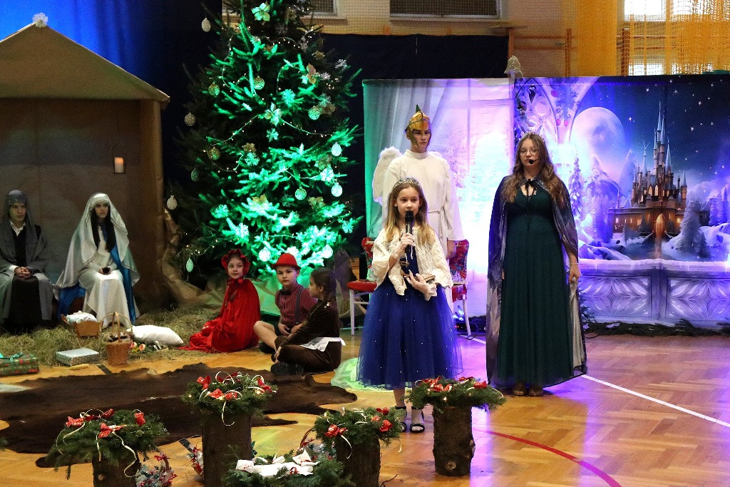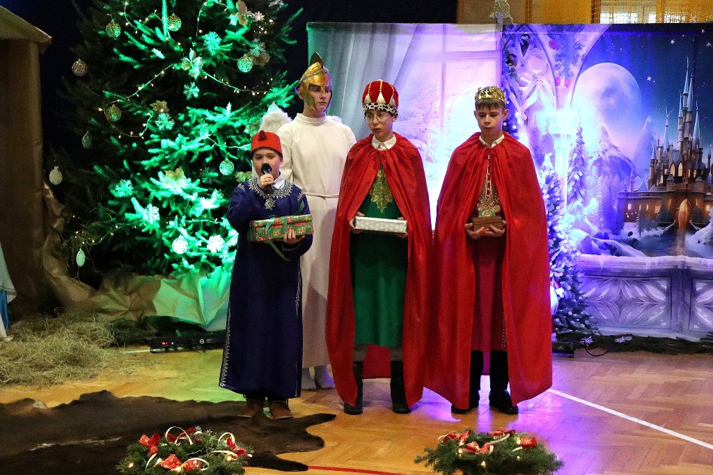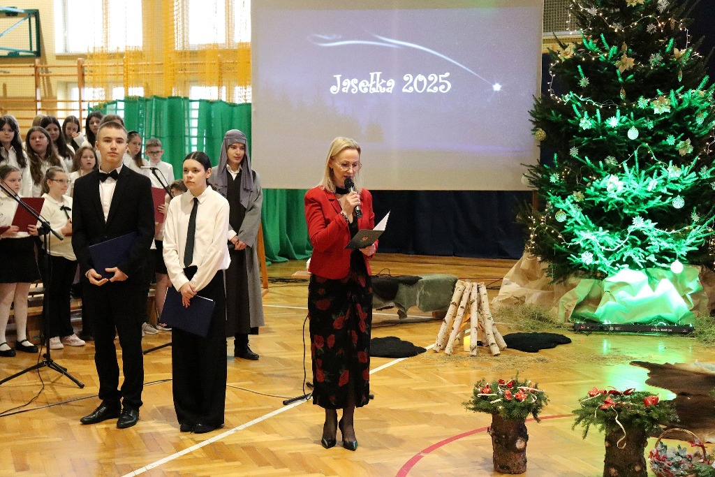 Wydarzenie rozpoczęło się od uroczystego powitania gości przez panią dyrektor Marię Kluge. Scenariusz tegorocznych jasełek, można powiedzieć, był trójwymiarowy, opierał się na tradycyjnych motywach biblijnych, historycznym przyjściu Jezusa w Betlejem.
