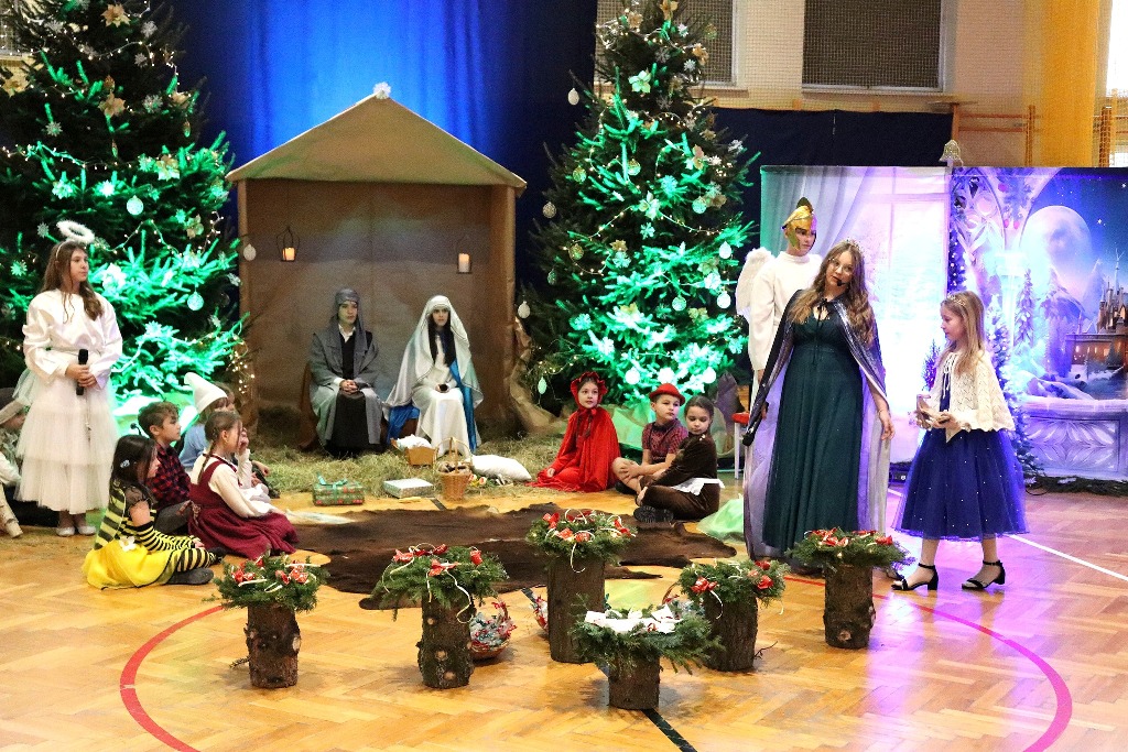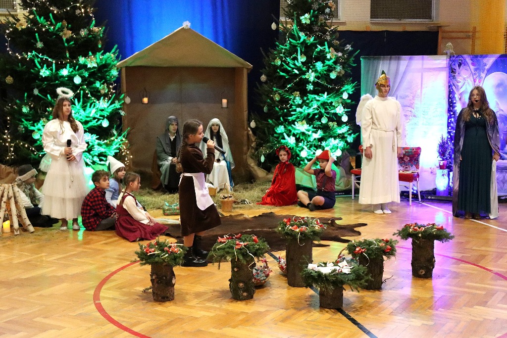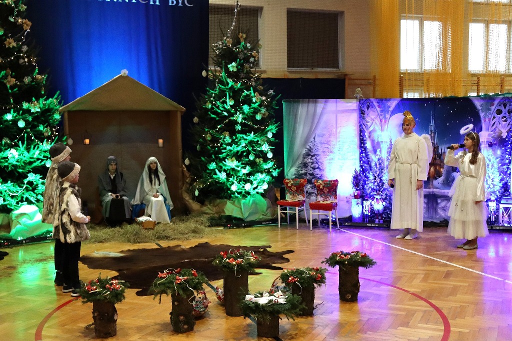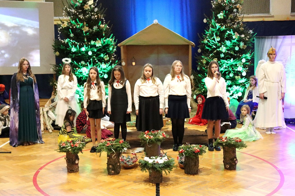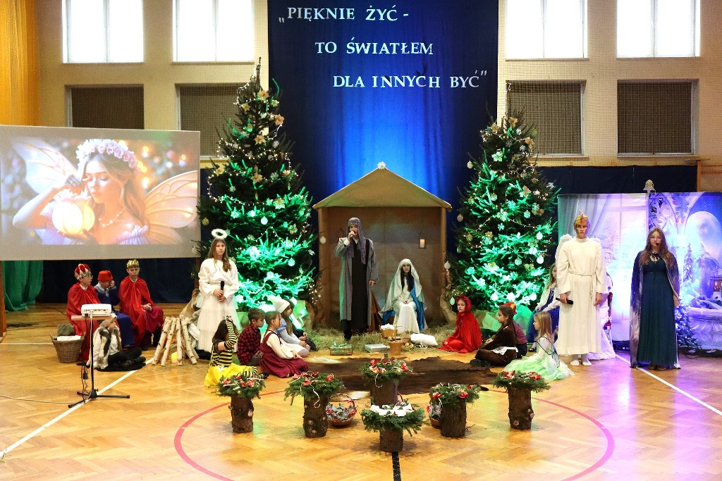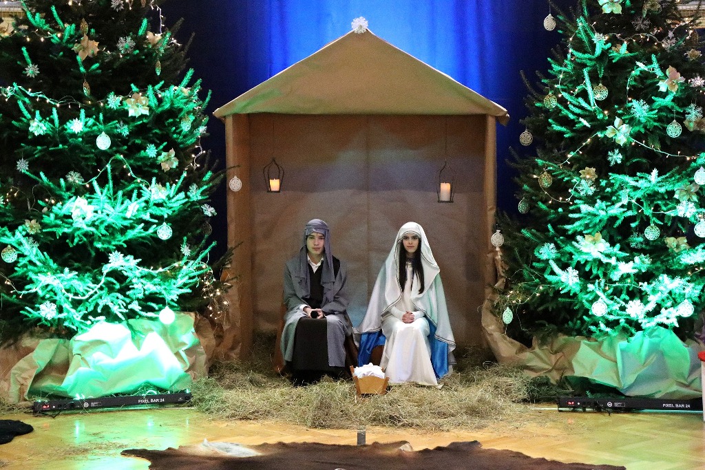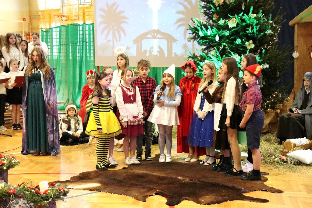 Wydarzenie rozpoczęło się od uroczystego powitania gości przez panią dyrektor Marię Kluge. Scenariusz tegorocznych jasełek, można powiedzieć, był trójwymiarowy, opierał się na tradycyjnych motywach biblijnych, historycznym przyjściu Jezusa w Betlejem.