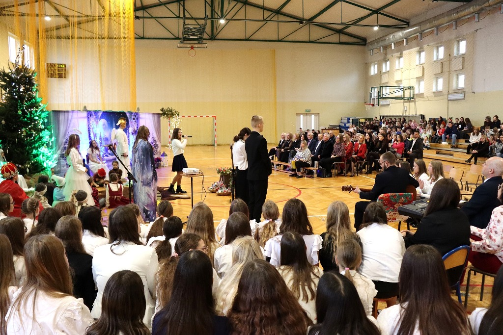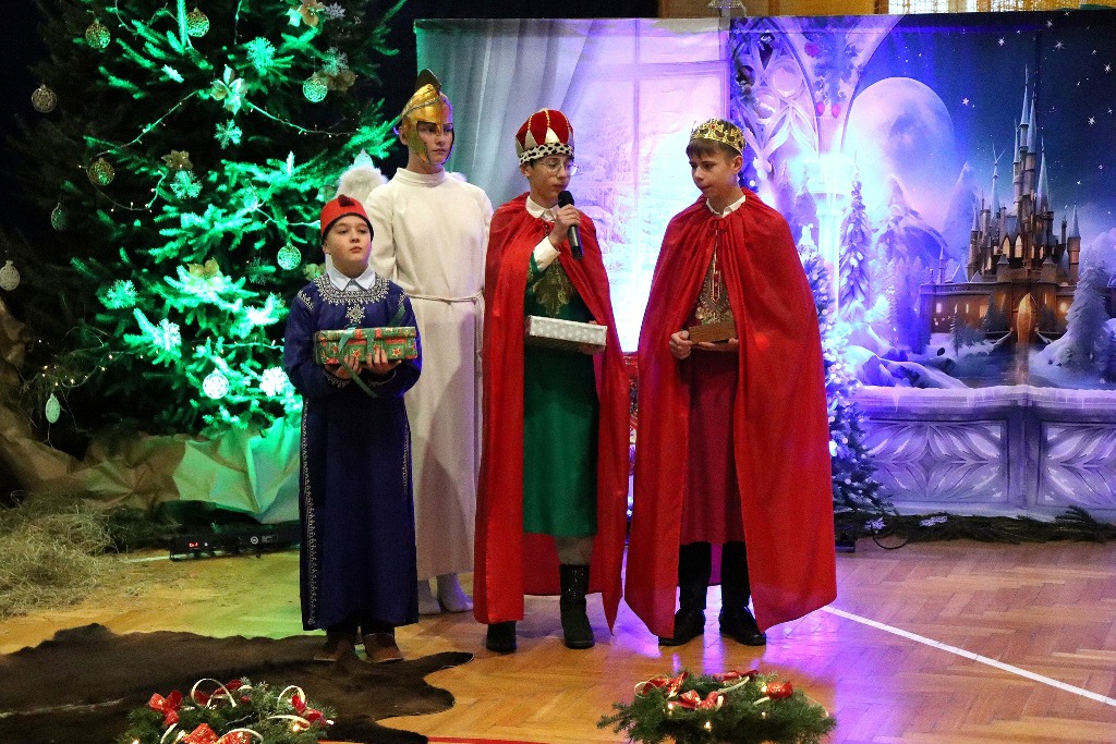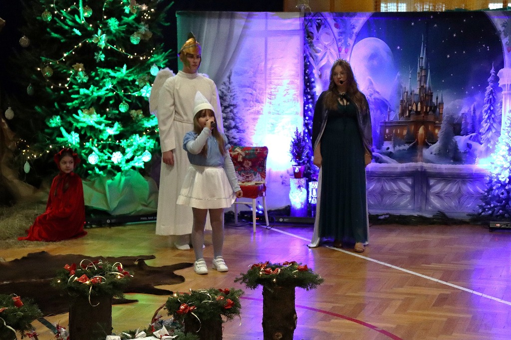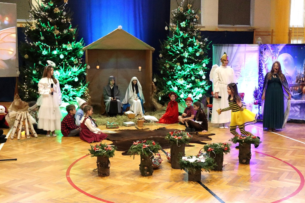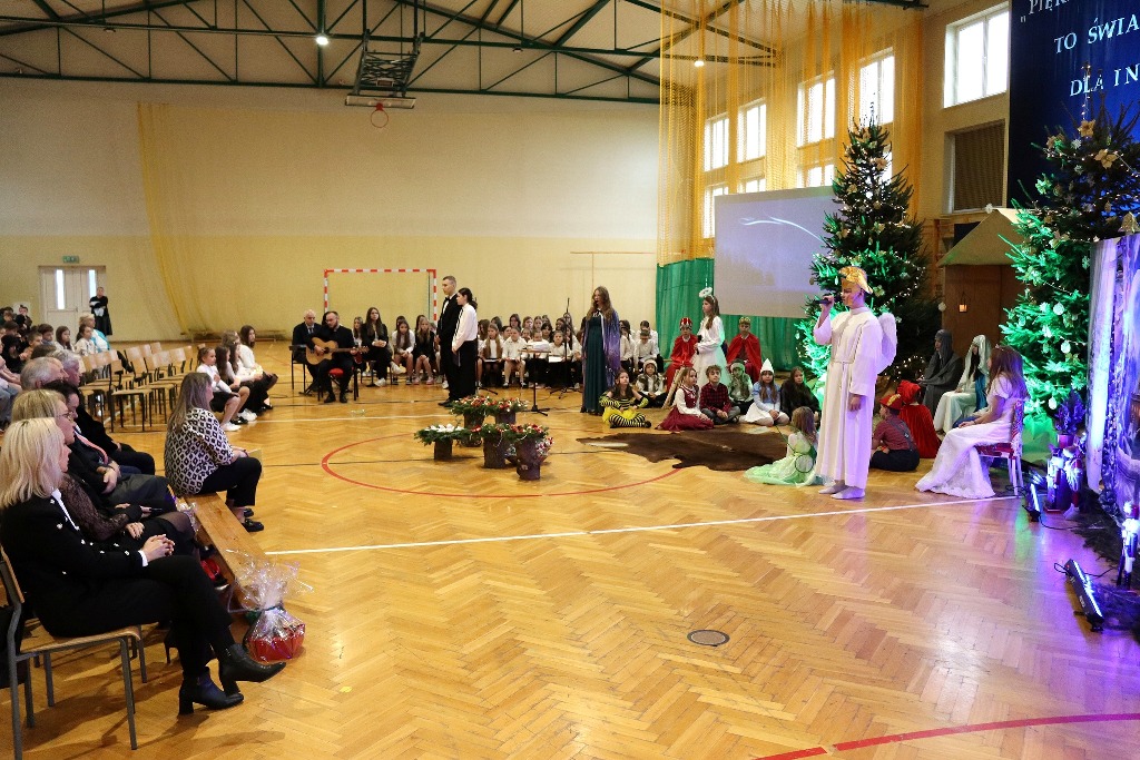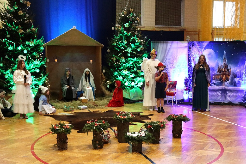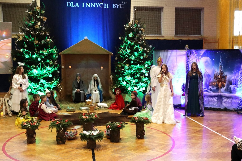 Wydarzenie rozpoczęło się od uroczystego powitania gości przez panią dyrektor Marię Kluge. Scenariusz tegorocznych jasełek, można powiedzieć, był trójwymiarowy, opierał się na tradycyjnych motywach biblijnych, historycznym przyjściu Jezusa w Betlejem.