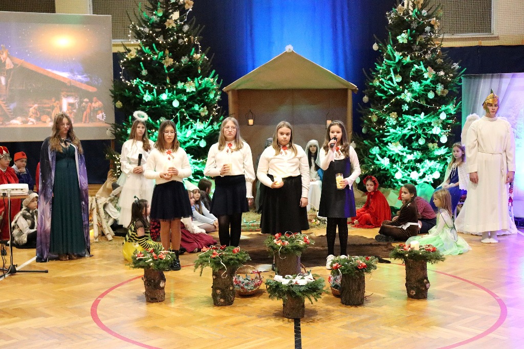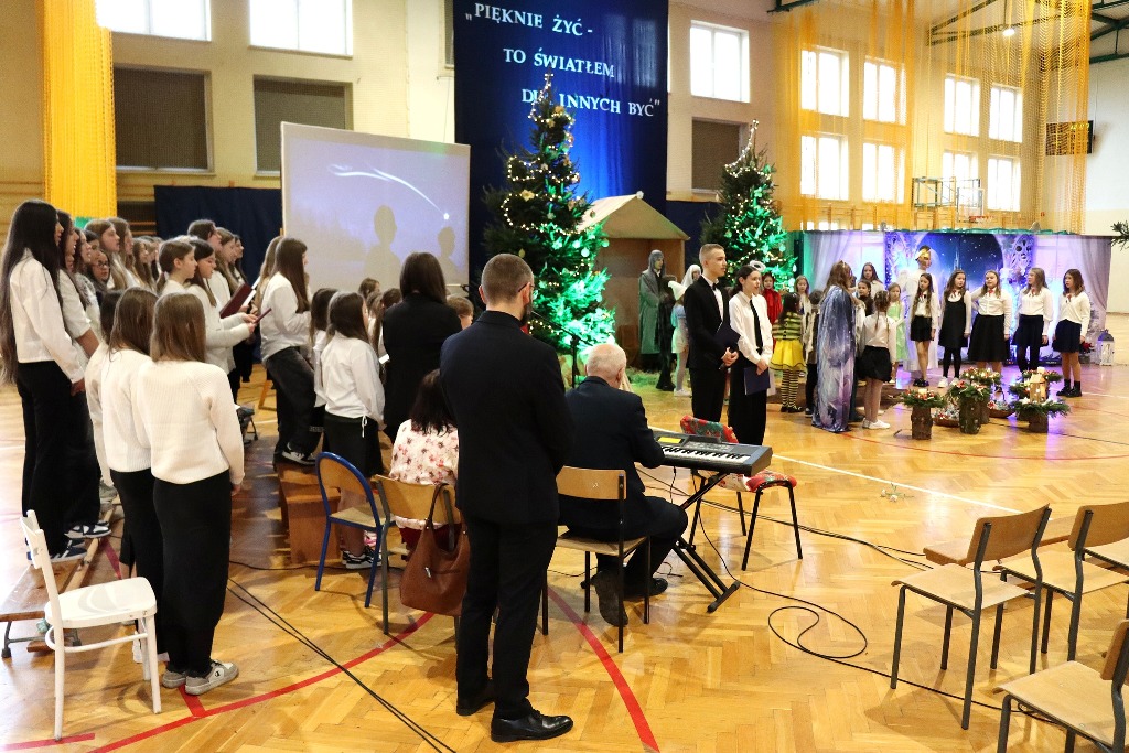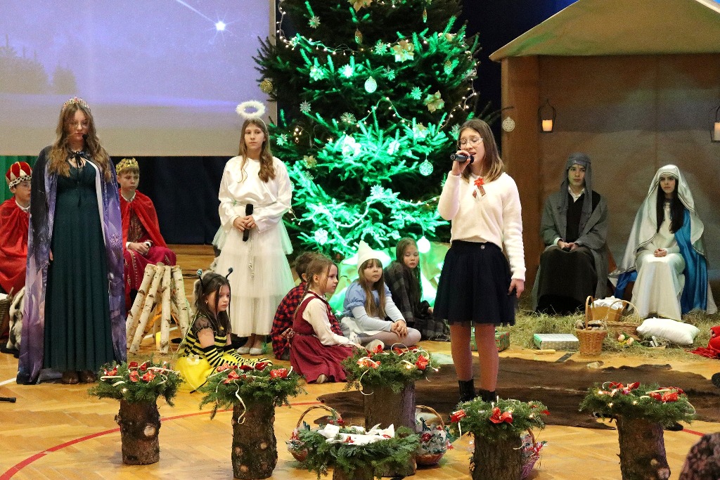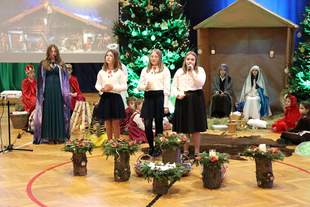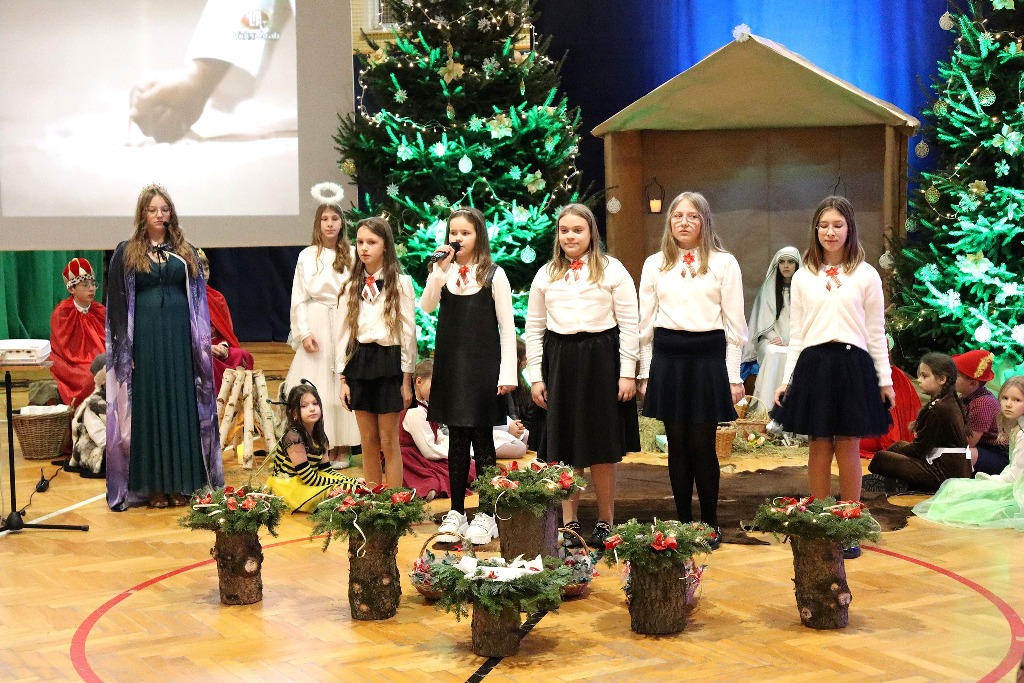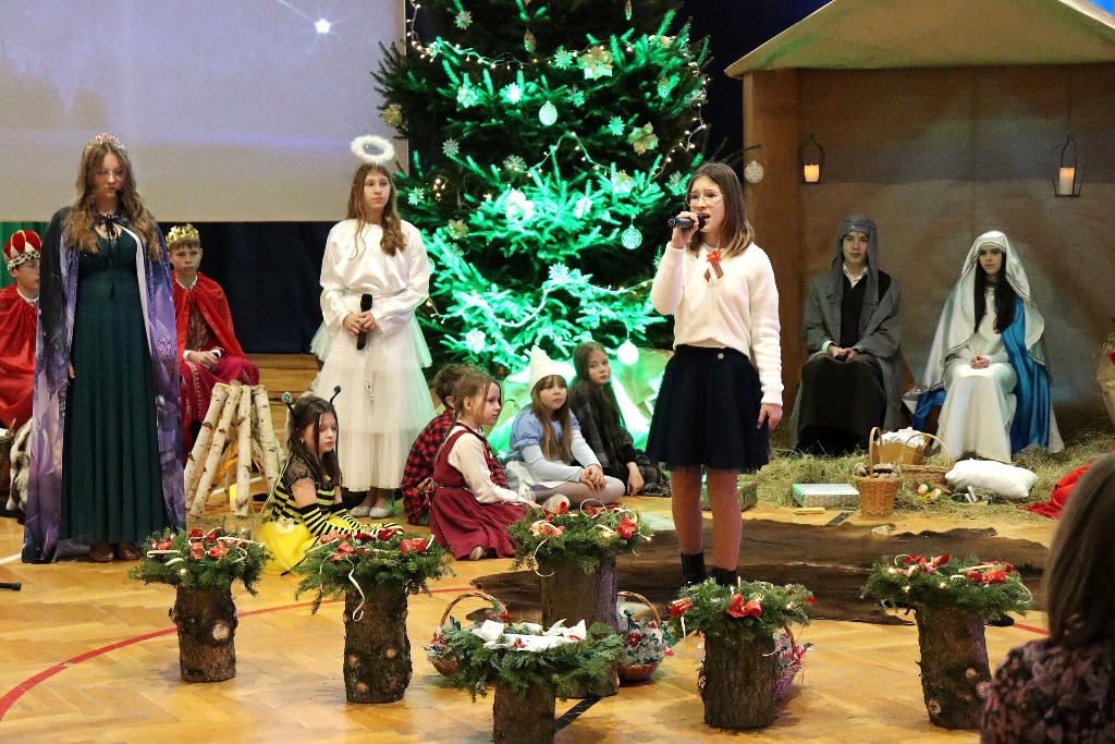 Szkolną uroczystość zakończyło wspólne zaśpiewanie kolędy „Gdy się Chrystus rodzi”.