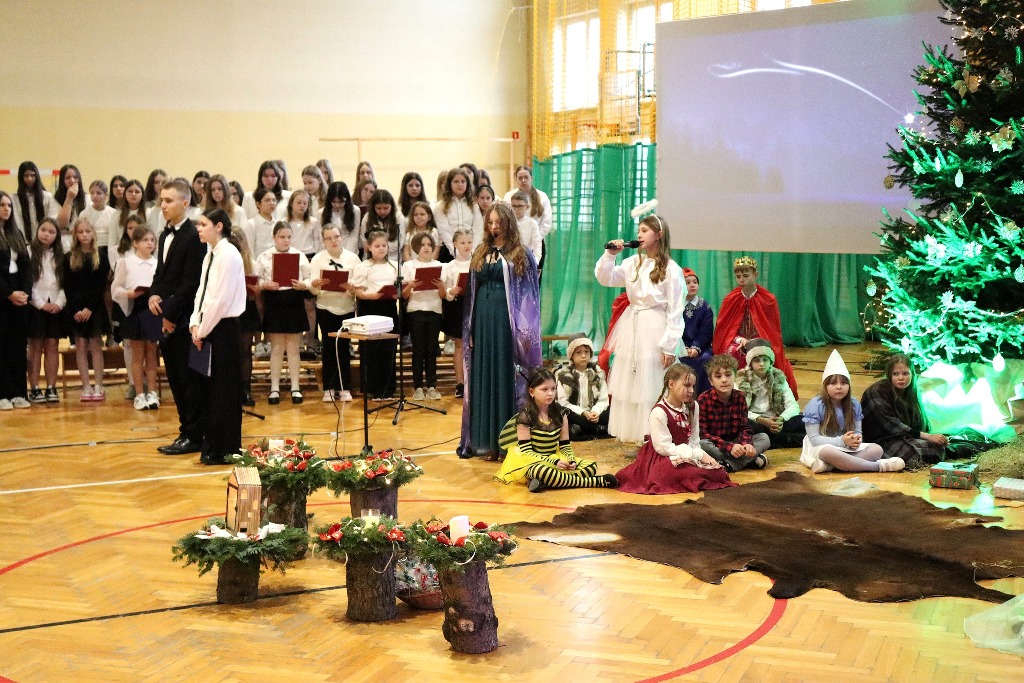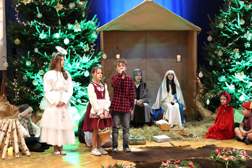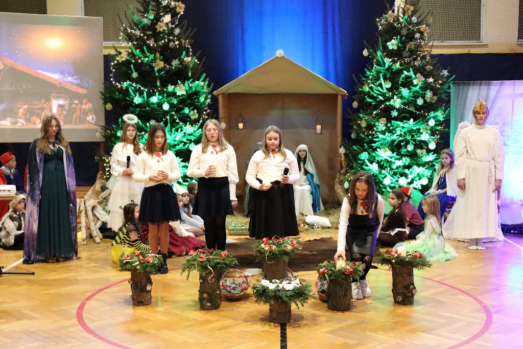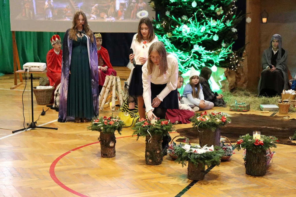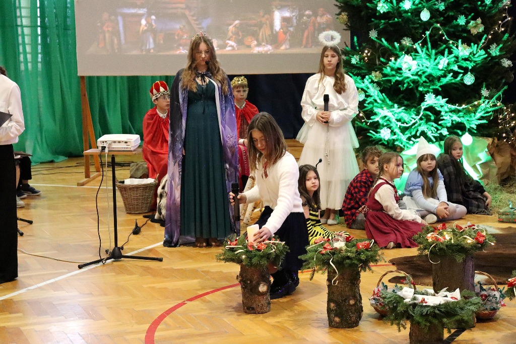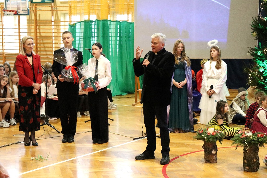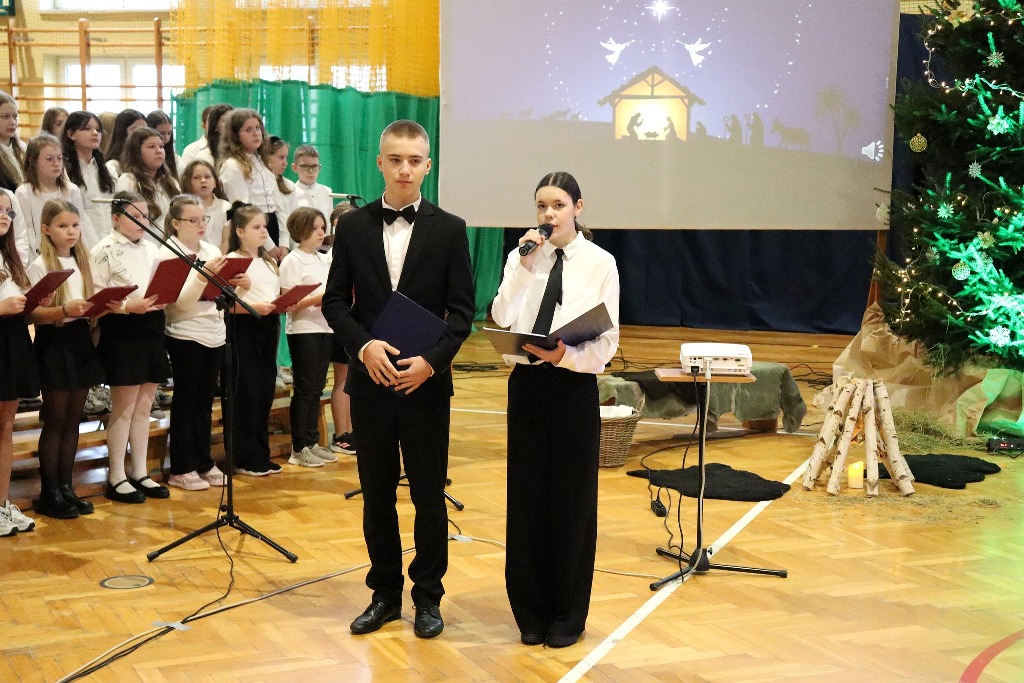 Szkolną uroczystość zakończyło wspólne zaśpiewanie kolędy „Gdy się Chrystus rodzi”.