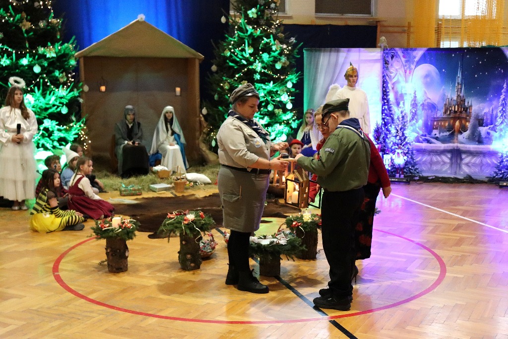 I do nas dotarło BETLEJEMSKIE ŚWIATŁO POKOJU, przywieźli je druhowie z 12 Wielopoziomowej Drużyny Harcerskiej SIGMA z Drobina, którzy na uroczystości jasełkowej przekazali światło na ręce pani dyrektor.