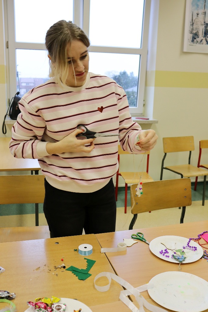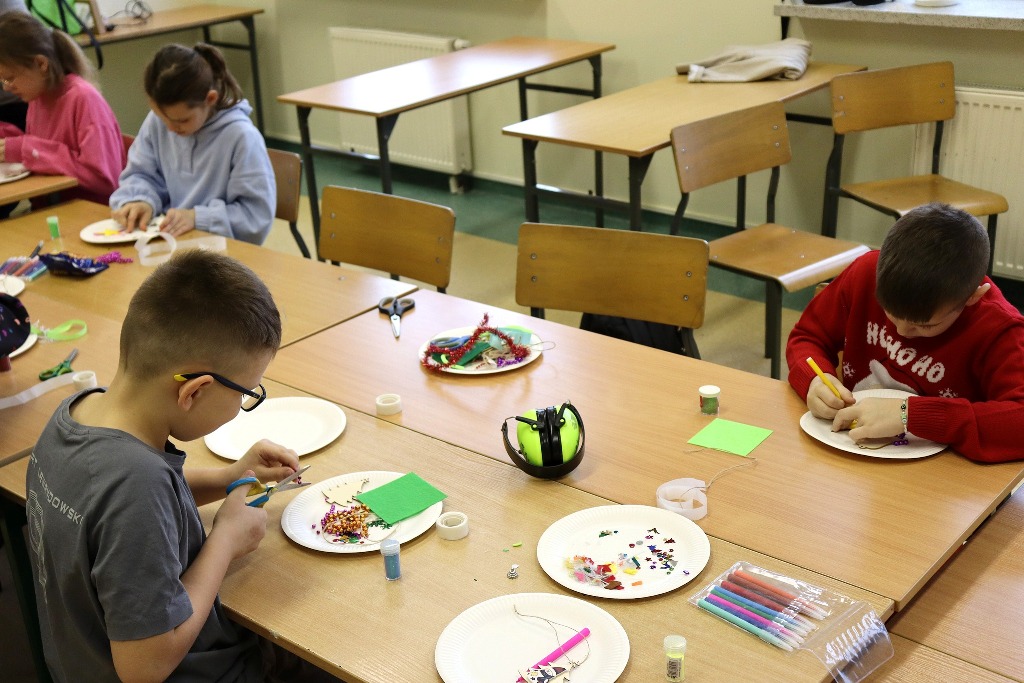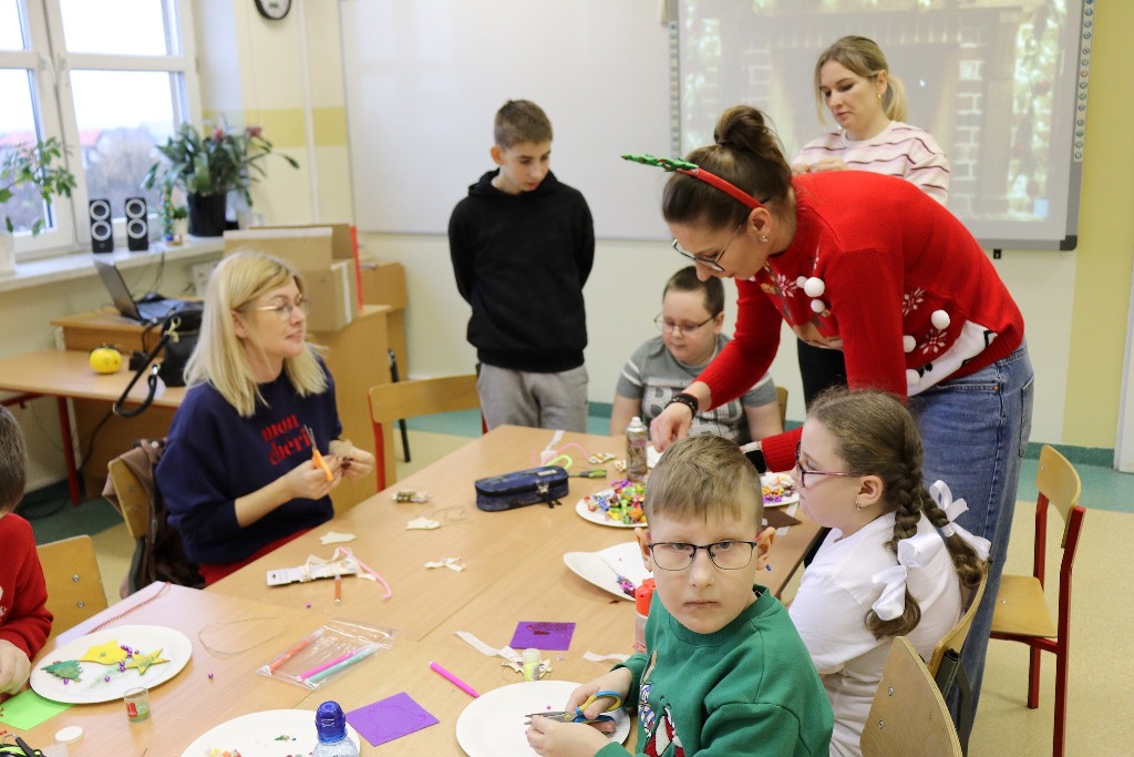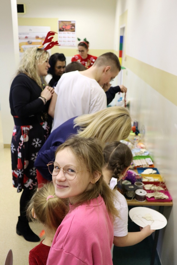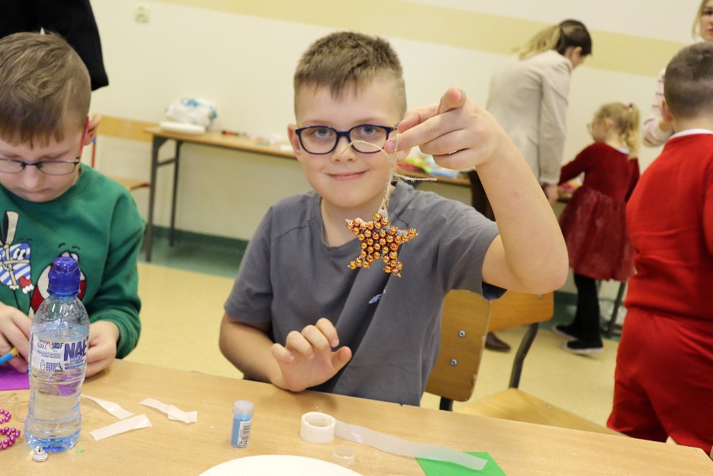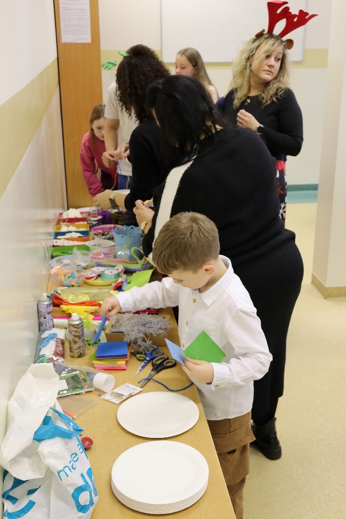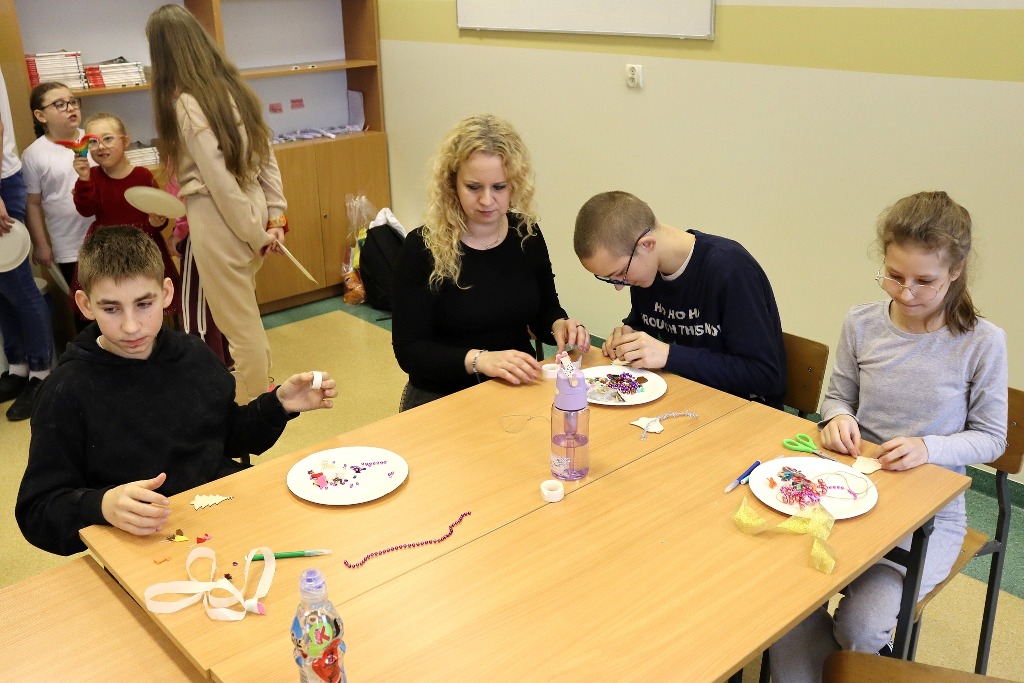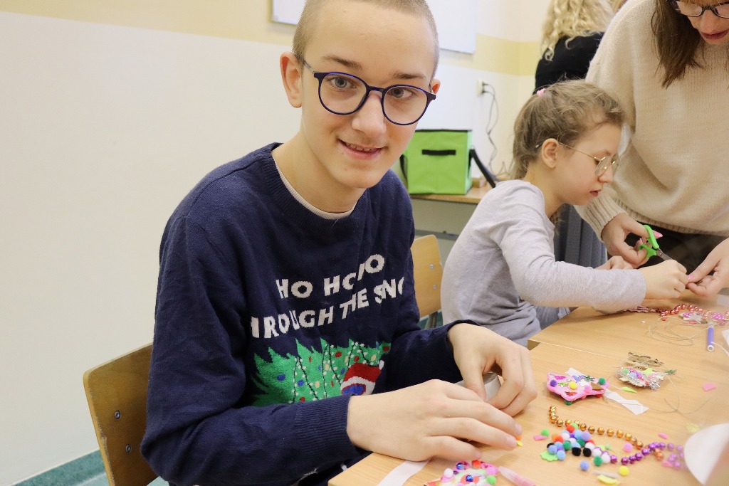 Następnie uczestnicy konkursu recytatorskiego „Magia Słowa – Magia Świąt” udali się na warsztaty artystyczne, podczas których mieli okazję poczuć prawdziwą magię nadchodzących świąt wykonując kreatywne ozdoby świąteczne.