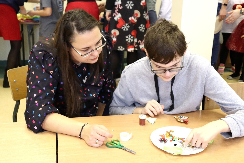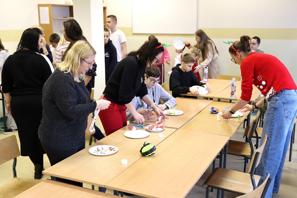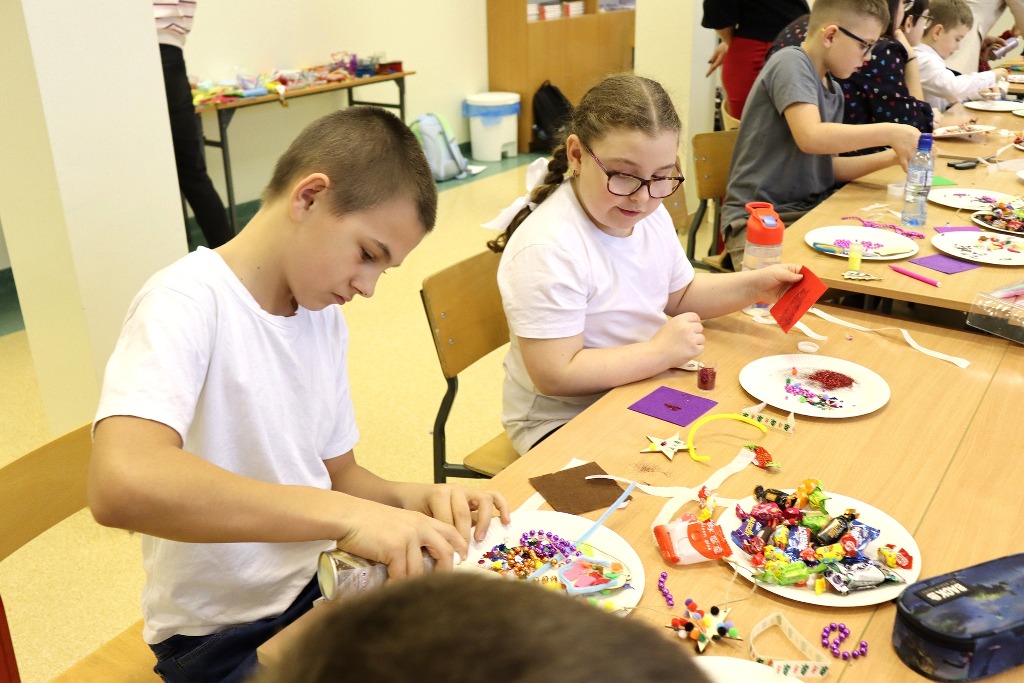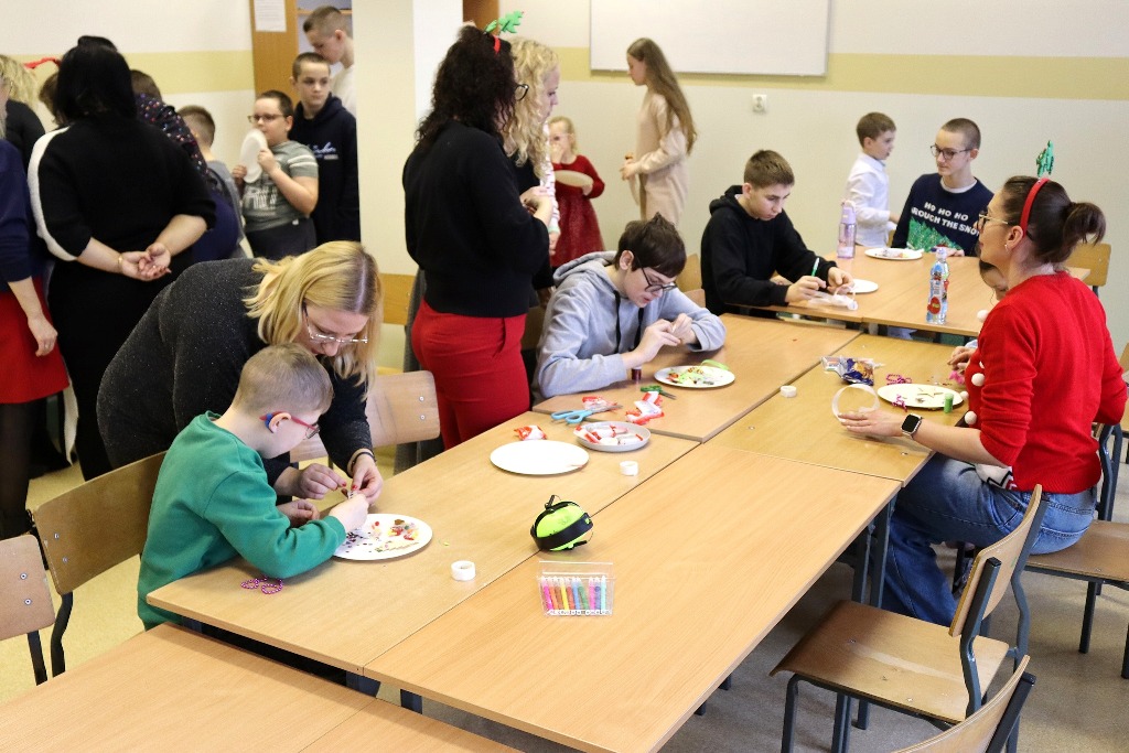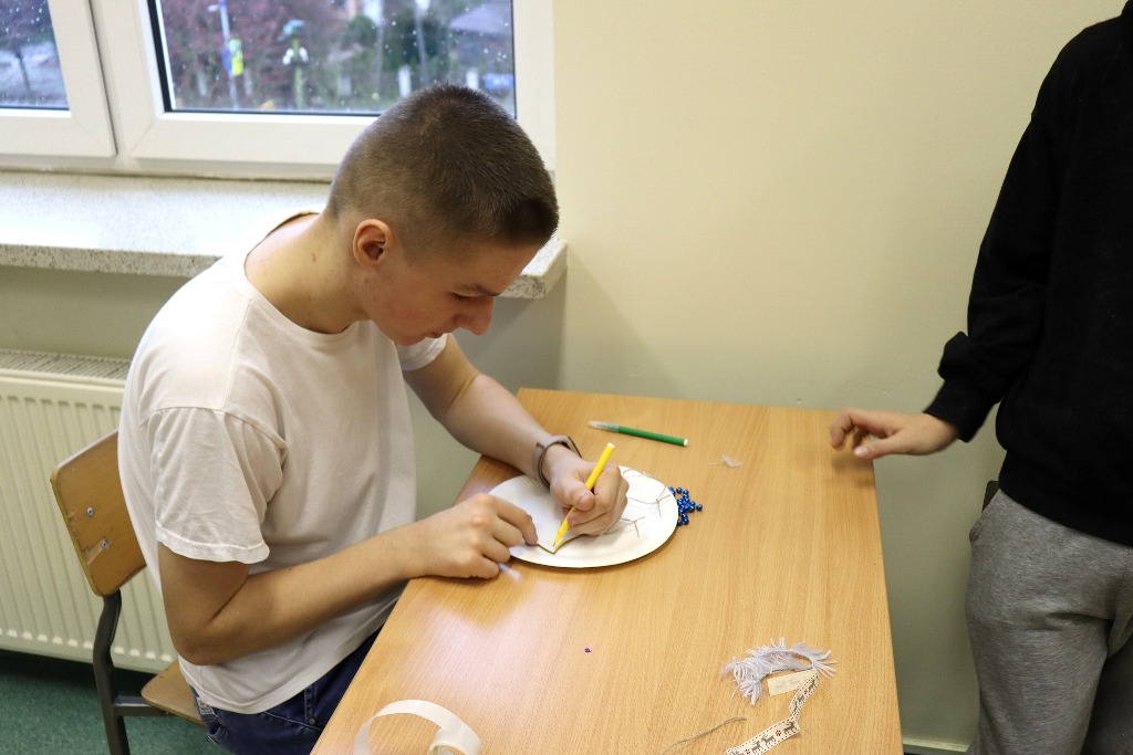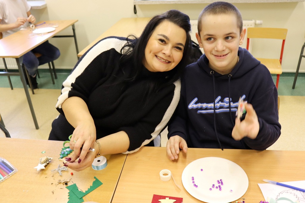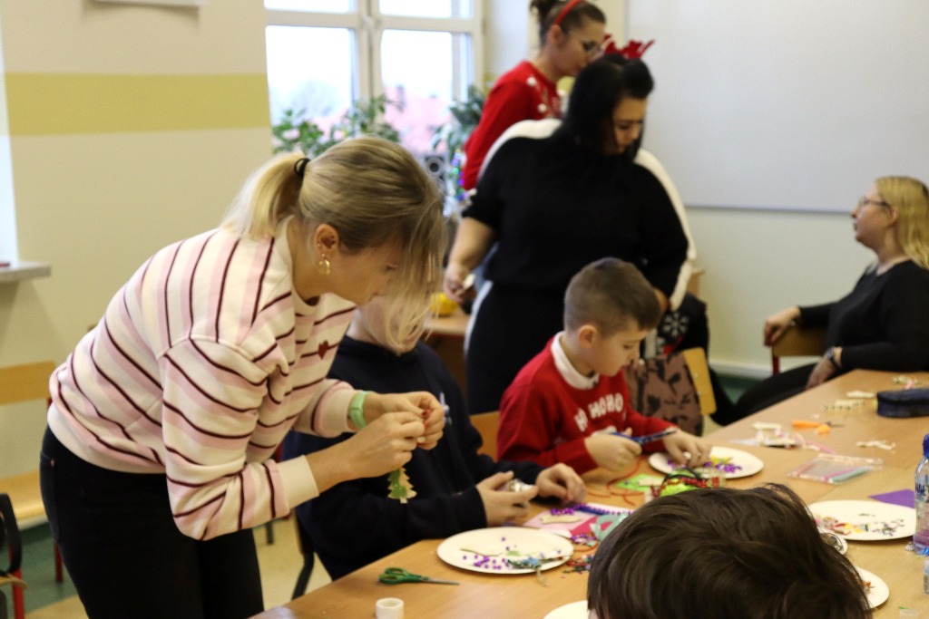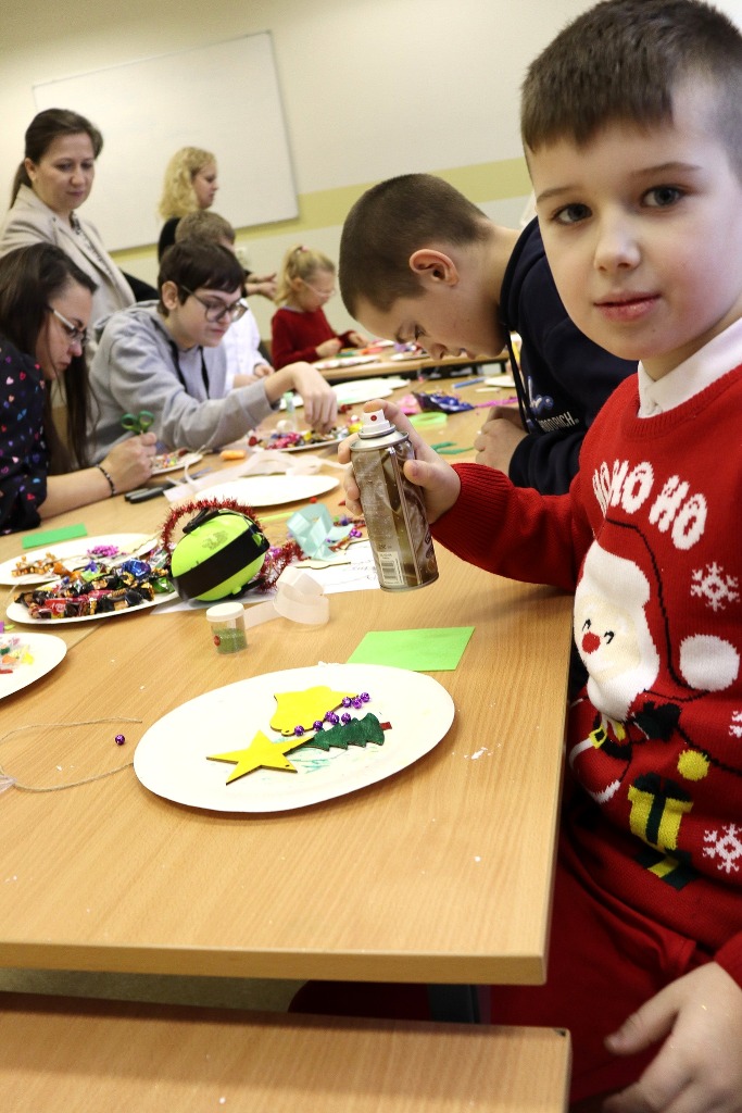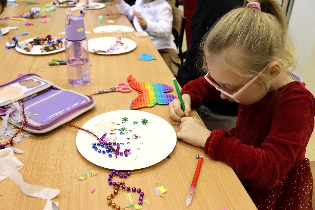 Następnie uczestnicy konkursu recytatorskiego „Magia Słowa – Magia Świąt” udali się na warsztaty artystyczne, podczas których mieli okazję poczuć prawdziwą magię nadchodzących świąt wykonując kreatywne ozdoby świąteczne.