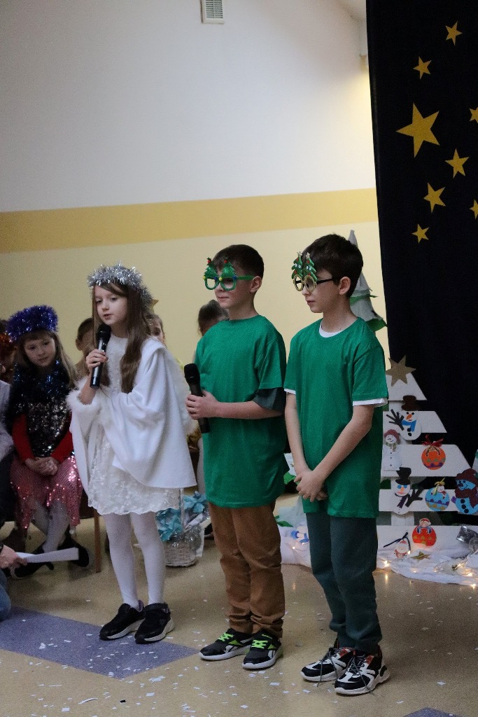 Zbliża się wyjątkowy czas – Boże Narodzenie. To okres wspólnego działania, wzajemnej pomocy i radości z bycia razem. Z tej okazji „Teatrzyk bez Barier” wystawił dla uczniów klas 1–3 przedstawienie pt. „Świąteczny czas”, w którym wystąpili uczniowie klasy 2b.