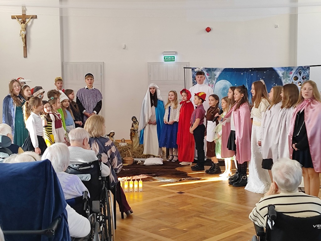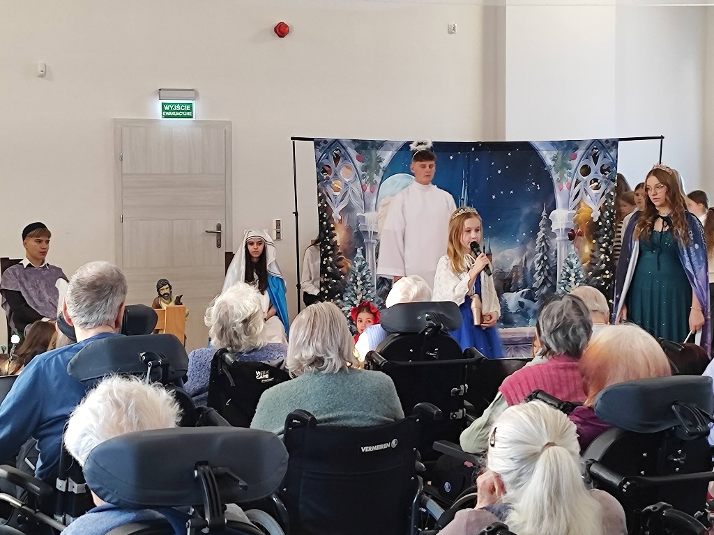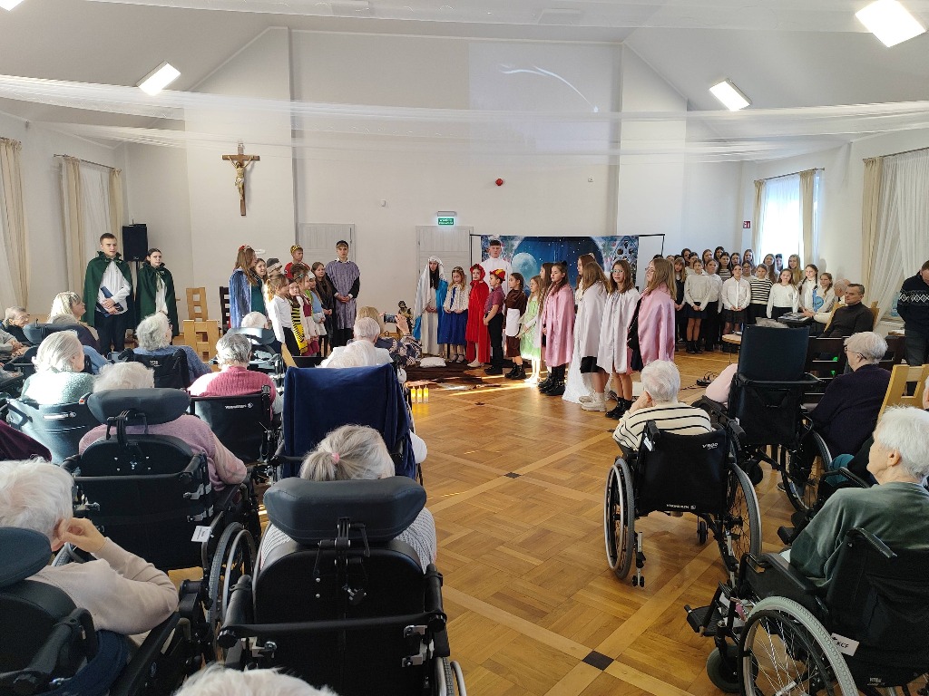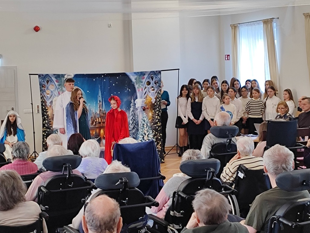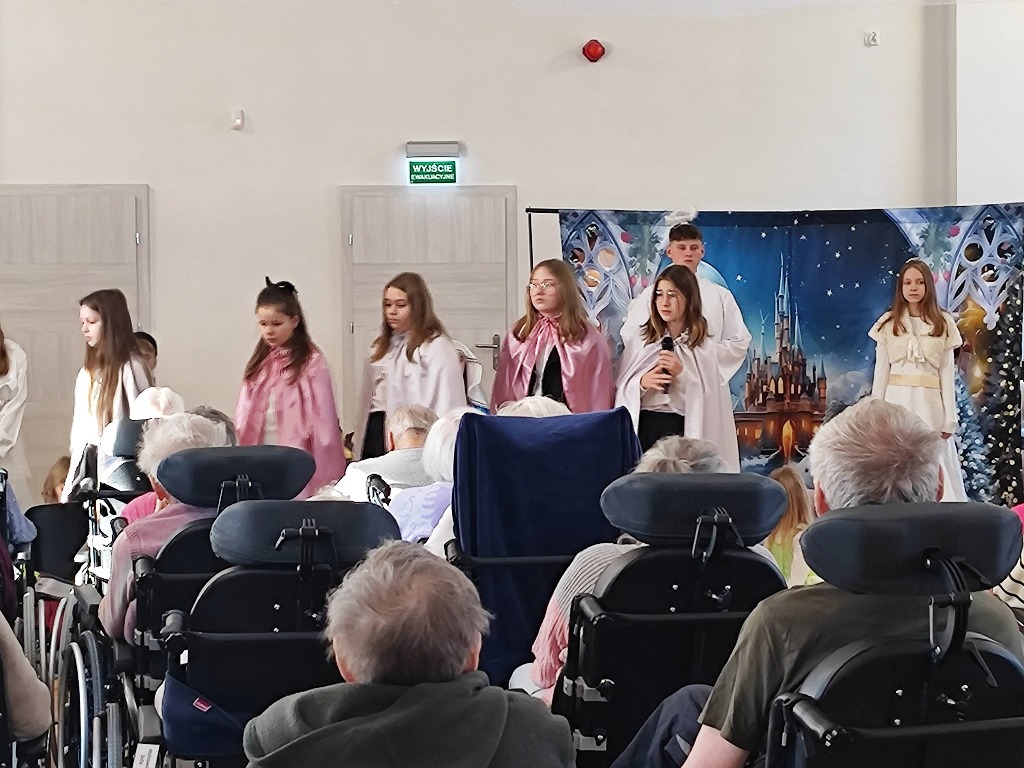 Dla nas to szczególne wydarzenie, które łączyło w sobie elementy artystyczne, emocjonalne i społeczne. Występ był pięknym obrazem tradycji, ale także okazją do rozwijania relacji i budowania więzi międzypokoleniowych oraz kształtowania postaw empatii i wrażliwości na potrzeby innych, szczególnie osób starszych, chorych i samotnych. Szczególnym momentem była wspólnie zaśpiewana kolęda, do której chętnie dołączyli podopieczni domu opieki. Była to dla nas również okazja poznać miejsce, w którym przebywają podopieczni placówki.