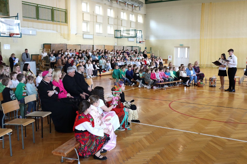 18 marca 2026 r. naszą szkołę w ramach wizytacji kanonicznej odwiedził Ksiądz Biskup Szymon Stułkowski. Obecność Księdza Biskupa była dla całej społeczności szkolnej wielkim świętem i ogromnym przeżyciem. Dostojny Gość został przywitany przez dyrektor szkoły – Panią Marię Kluge.