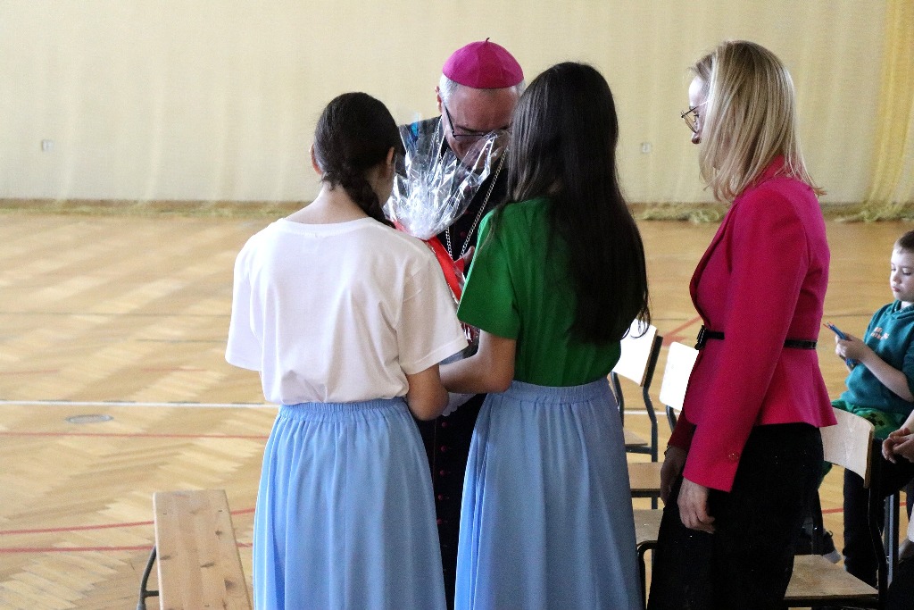 Na zakończenie ordynariusz diecezji spotkał się z nauczycielami i Panią Dyrektor. Spotkanie przebiegło w miłej i serdecznej atmosferze.