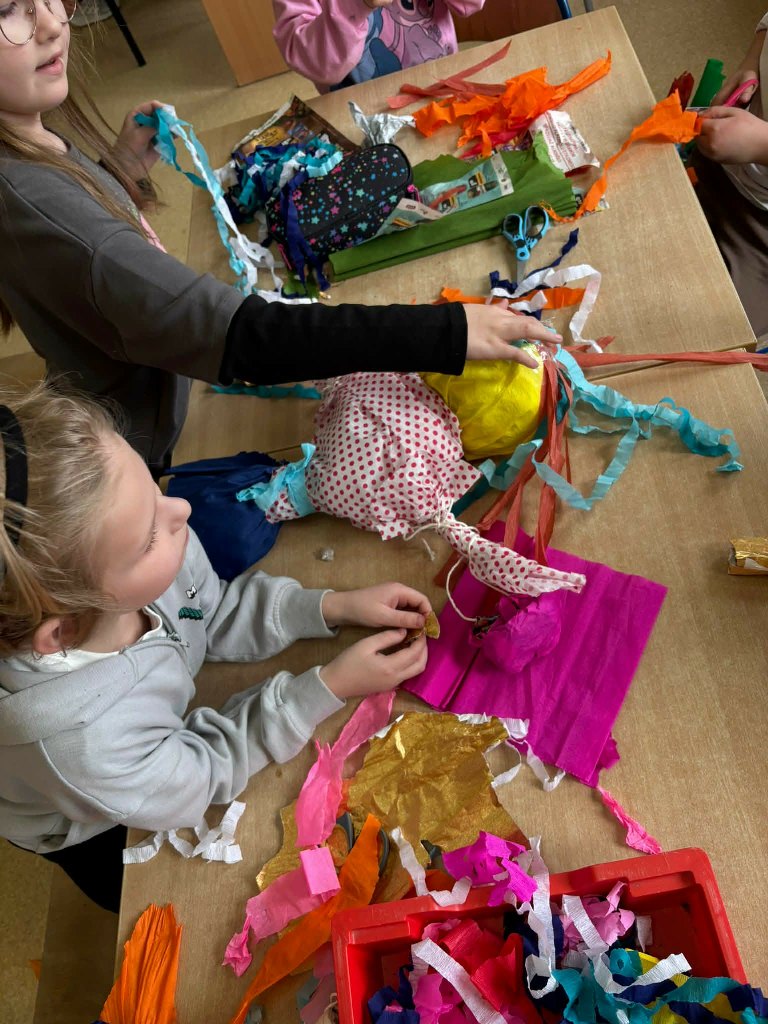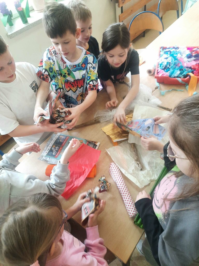 W ostatnich dniach dzieci w świetlicy szkolnej aktywnie przygotowywały się na nadejście wiosny. Wspólnie wykonały tradycyjną marzannę, która stała się piękną, kolorową ozdobą, a jednocześnie symbolem pożegnania zimy.