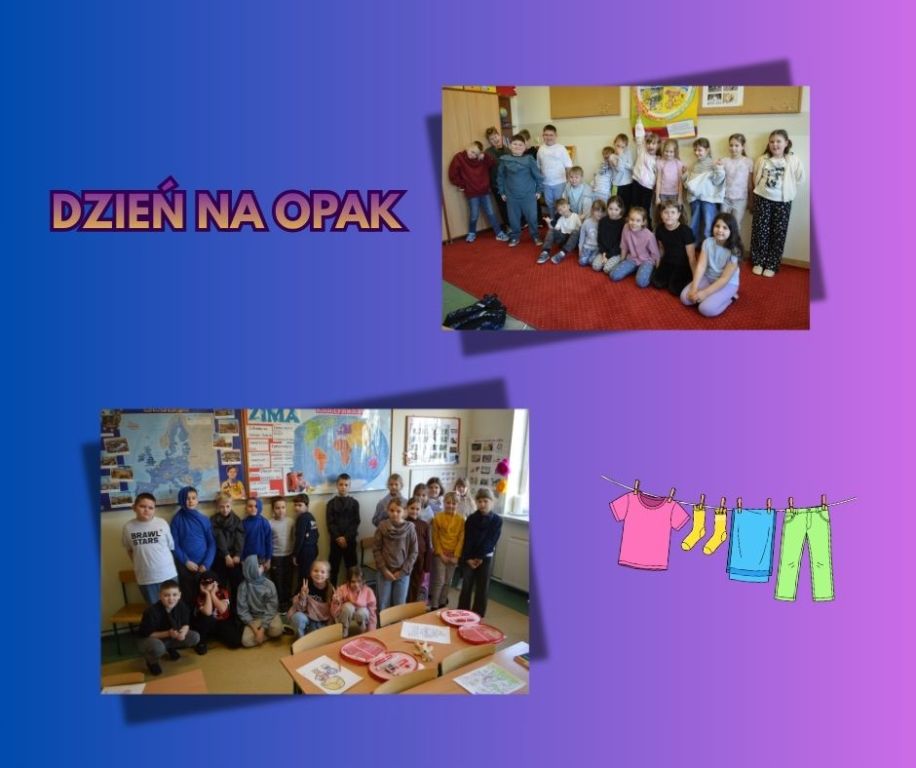 - Dzień Kolorowych Ubrań- chodzi tu o to, że będzie wyznaczony 1 dzień w tygodniu, w którym uczniowie będą się ubierać na jeden kolor, a jeśli cała klasa się na dany kolor ubierze, to nie będzie mieć zadanej pracy domowej.(np. w piątek).